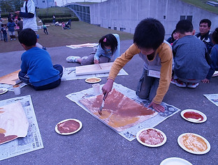 その後、オーストラリアの土と日本の土を使い、思い思いに絵画を完成させました。